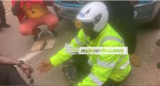 #OccupyJulorbiHouse: Policeman sits on the floor to plead with demonstrators to unblock roads