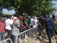 NDC supporters protest at EC headquarters ahead of result declaration