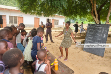 Akosombo Dam spillage: Young lady volunteers free lessons for displaced children in Mepe