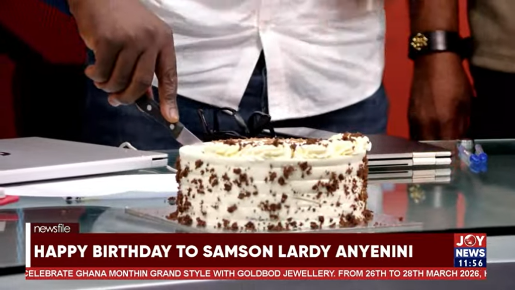 In a heart-warming moment on Newsfile on JoyNews on Saturday, March 14, 2026, panellists on the programme, Ghana’s leading current affairs analysis show, surprised host Samson Lardy Ayenini with a live birthday celebration during the latter part of the broadcast.