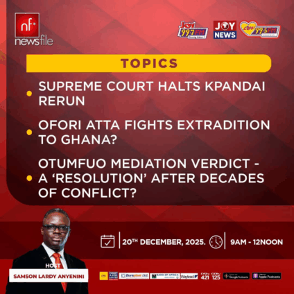 Join Samson Lardy Anyenini this Saturday at 9 a.m. on JoyNews and MyJoyOnline on Newsfile as we unpack what it all means for trust in institutions, the rule of law, and national cohesion.
