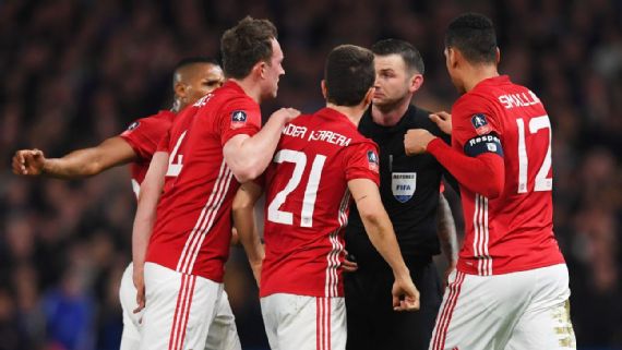 Ander Herrera was sent off in the first half after a pair of bookings for fouls on Eden Hazard, giving Kante the space he needed to score early in the second half.