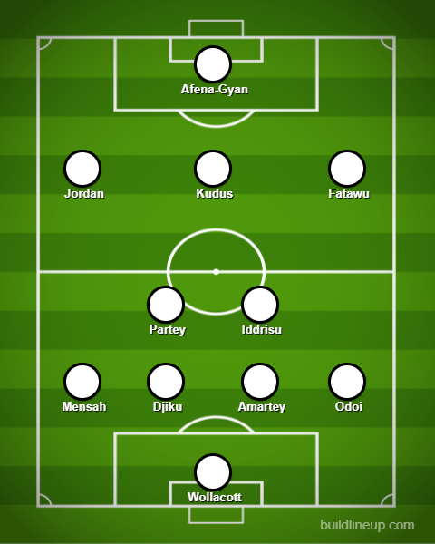 The midfield constituted of Owusu at the base with Kyereh and Partey on either side, while Kudus played off Afena-Gyan.