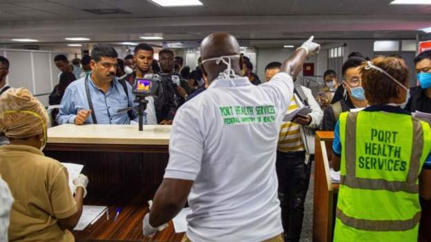 The BBC's Chris Ewokor in the capital, Abuja, says Nigerians returning to the country must now self-isolate for 14 days.