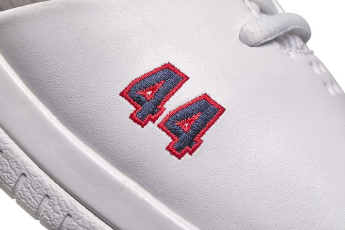 The medial toe displays the number 44 in blue with red outline stitching for Obama’s 44th presidency. To add to the presidential hype, the signature embroidered 44 is likely the reason why Sotheby’s has scheduled the sale of these exclusive sneaks for 4:44 pm eastern on February 12.