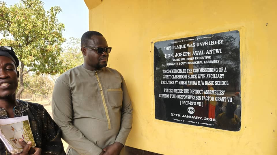 The Municipal Chief Executive (MCE) for Nkwanta South in the Oti Region, Joseph Antwi Awal, has commissioned a newly completed three-unit classroom block for Mmen Akura M/A Junior High School (JHS), a key step toward improving teaching and learning conditions in the community.