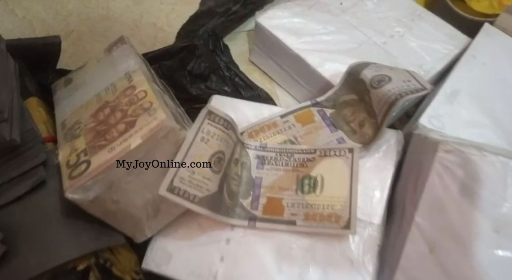 The Ghanaian currency was not the only ones the suspects may be engaging in as there was an indication of the US dollar at the arrest scene.
