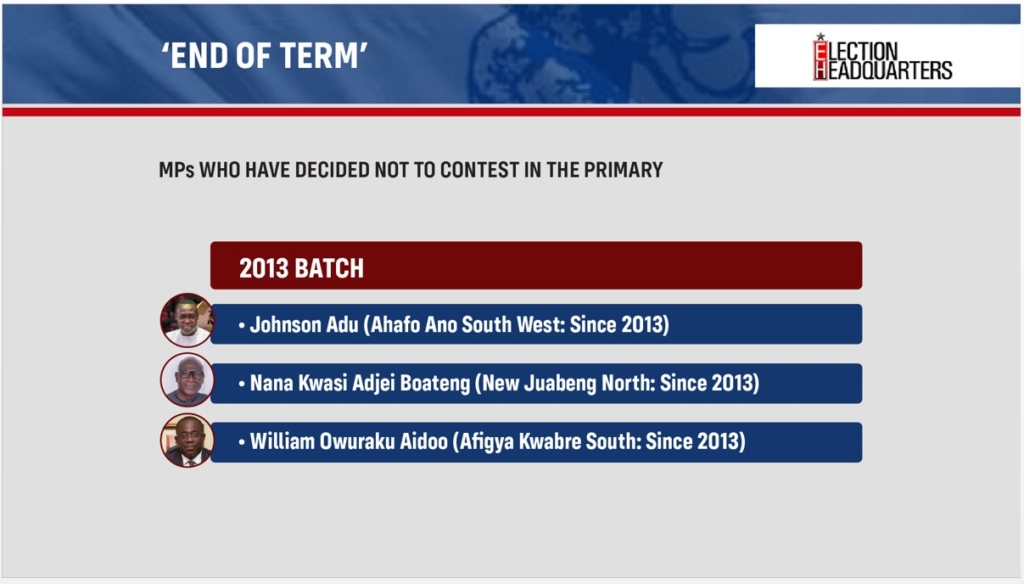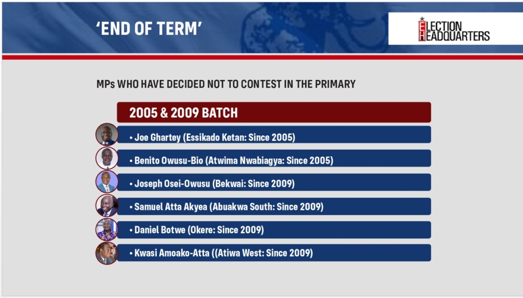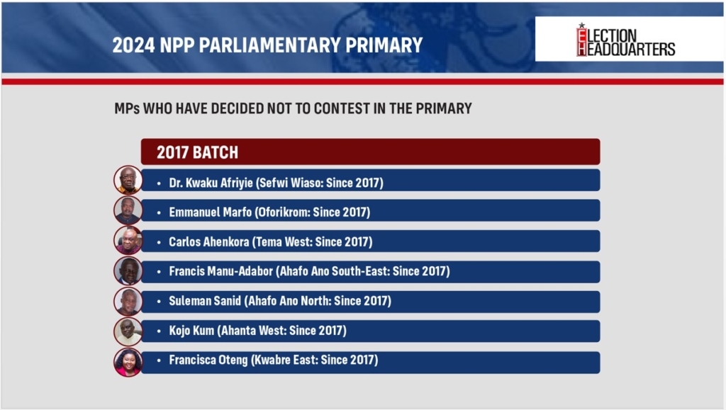 Arm yourself with our infographics capturing all the facts and figures you need to follow and analyse the New Patriotic Party's parliamentary primaries in constituencies where it has sitting parliamentarians.