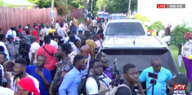 According to JoyNews correspondent James Avedzi, the NPP supporters were transported in two Sprinter buses from the EOCO headquarters to the NIB premises after news broke of Wontumi’s relocation.