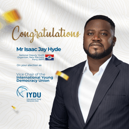 In a landmark moment for Ghana and Africa’s growing imprint on global politics, Isaac Jay Hyde, Deputy National Youth Organiser of the New Patriotic Party (NPP), has been elected Vice Chair of the International Young Democracy Union (IYDU).