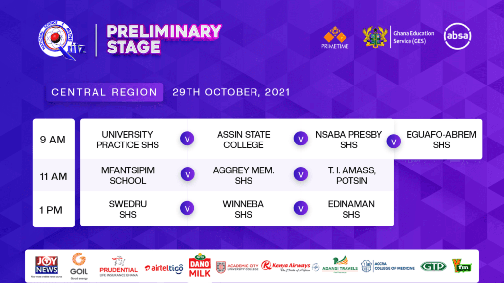 Below are the schedules for the Preliminary Stage of the 2021 National Science & Maths Quiz: