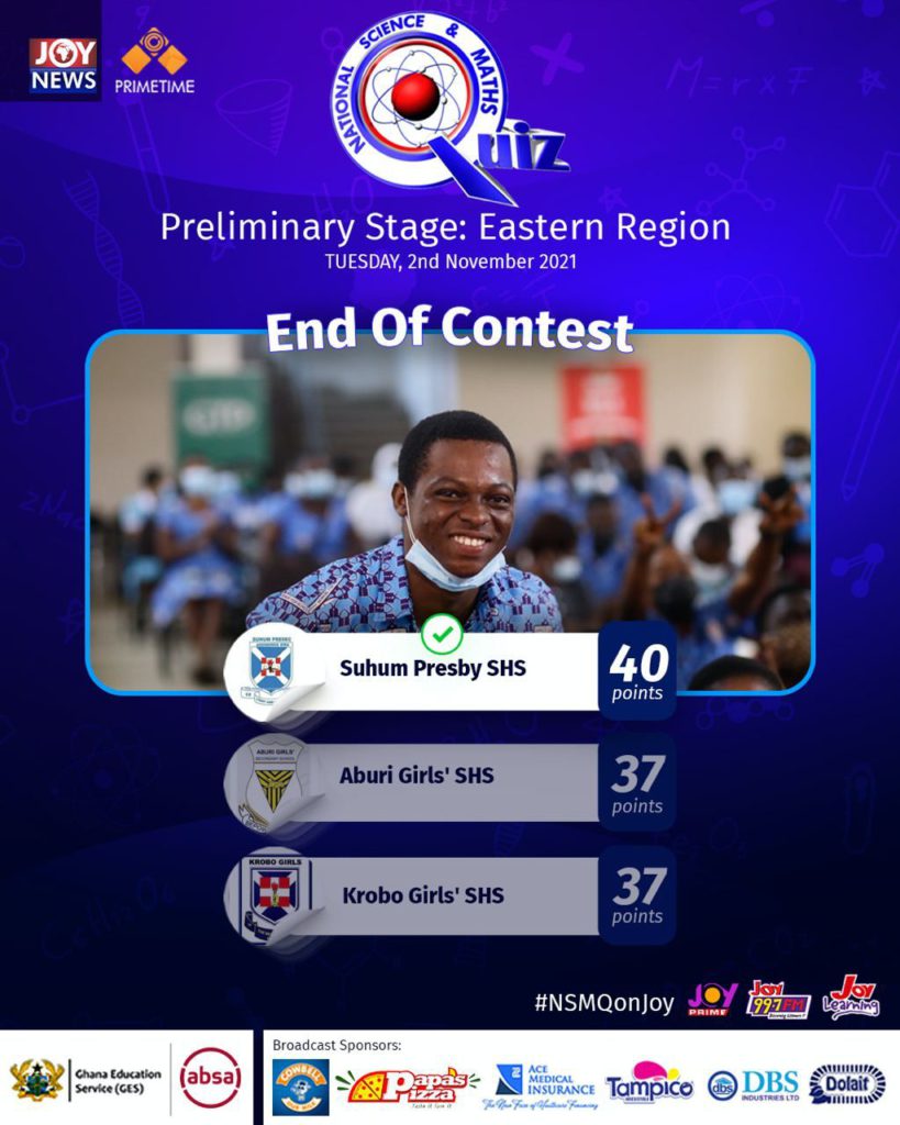 Suhum Presby SHS won the contest with just three points difference as they recorded 40 points at the end of the 'fire' contest which took place on Tuesday.