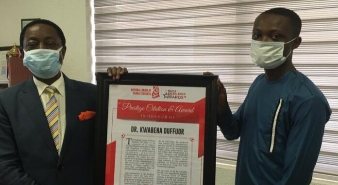 The National Union of Ghana Students (NUGS) has honoured former Finance Minister Dr Kwabena Duffuor for his enormous role in the development of the youth and the overall development of the country.