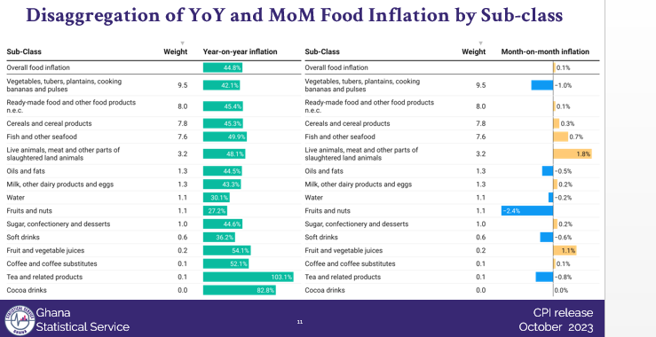Data from the Ghana Statistical Service (GSS) showed that the decrease in the general inflation rate can be attributed to the marginal drop in food inflation.