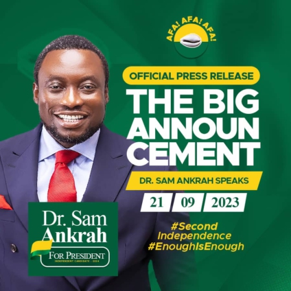 God willing, Alternative Force for Action will participate in the national elections slated for December 2024 to choose the leadership of this nation. We shall do so with an independent presidential candidate, Dr Sam Ankrah and with independent parliamentary candidates. These will be people who identify with and are in full support of what we stand for.