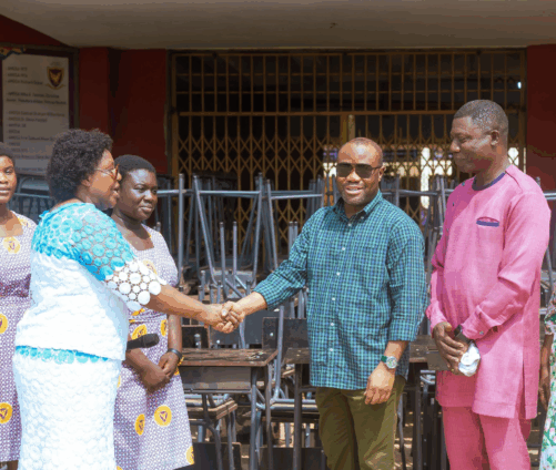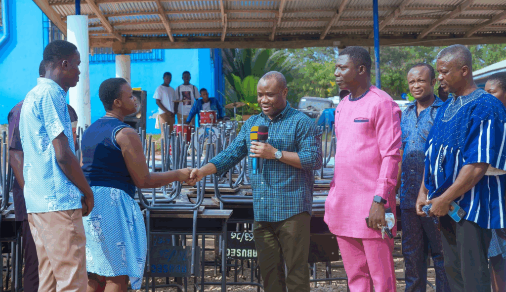 According to a post shared on Facebook on Sunday, February 1, the donation, made on Tuesday afternoon, comprised 5,000 tables and 5,000 chairs distributed among all five public senior high schools in the constituency.