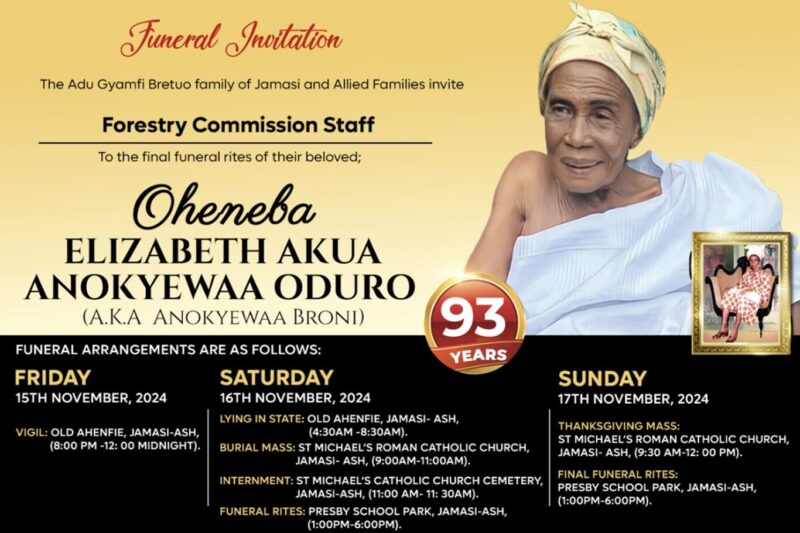 LYING IN STATE: Old Ahenfie, Jamasi-Ashanti Region 4:30 am - 8:30 am).