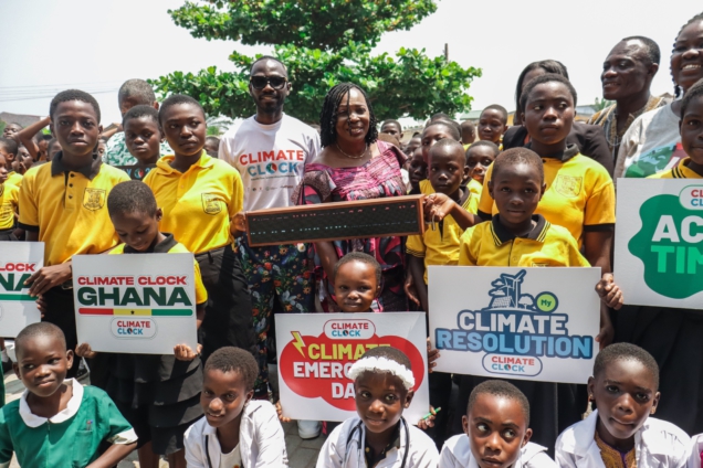 Climate Clock ambassador, Okyeame Kwame, the Mayor of Accra, Elizabeth Naa Sackey and a lead organiser for Climate Clock, Portia Adu-Mensah, celebrated this year’s Climate Emergency Day in a grand style.