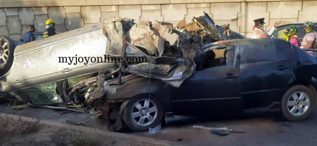 One person is feared dead after four cars were involved in an accident that occurred at the University of Ghana underpass on the Adenta-Accra highway.