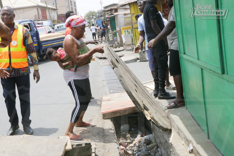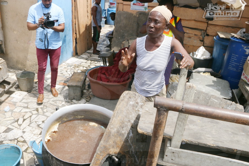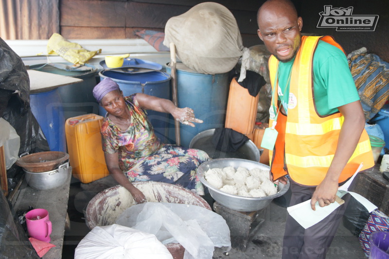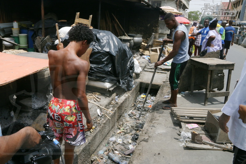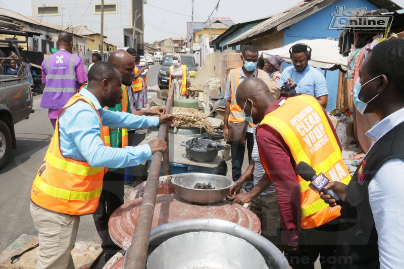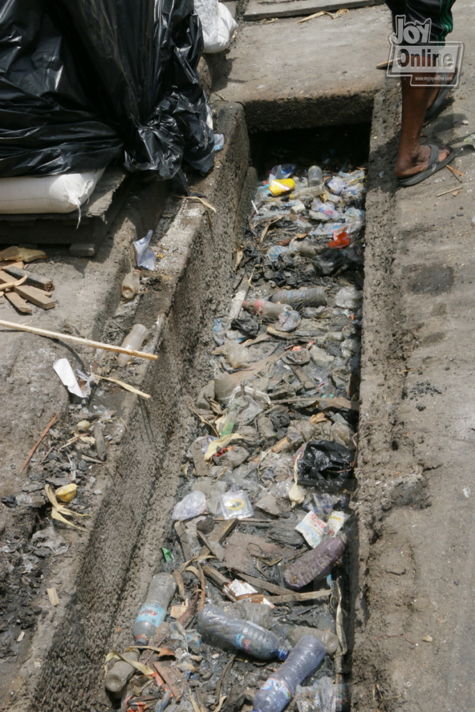 On arrival in the community, the team saw that gutters in front of a kenkey factory were choked with plastic waste and feaces.