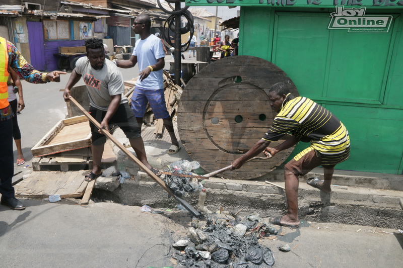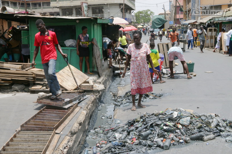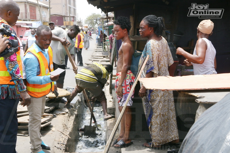Residents of Korle-Wonko, a suburb of Accra, were on Wednesday made to clean gutters in their frontage when Joycleanghana campaign team and Accra Metropolitan Assembly’s Public Health Inspectors stormed the community to sensitize them on how to maintain good hygiene.