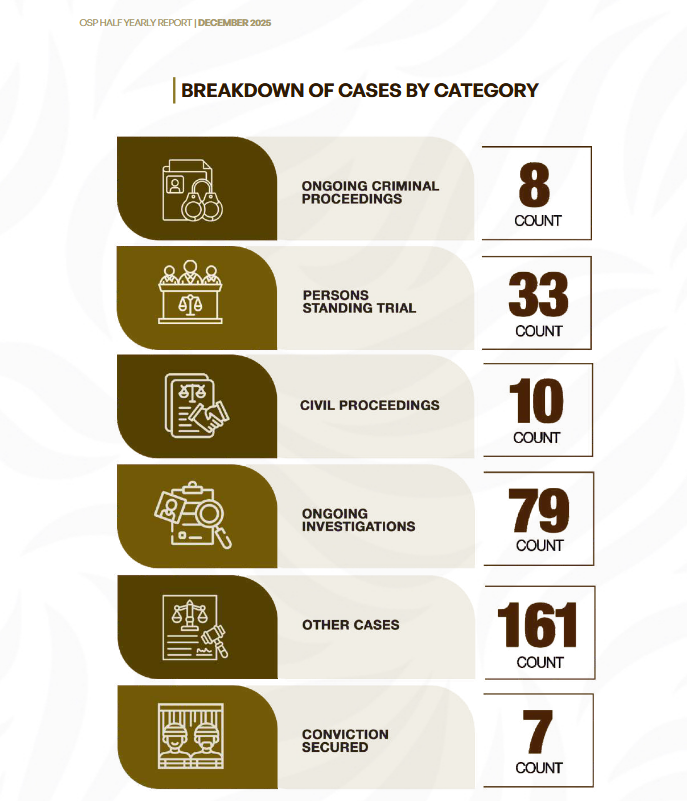 The OSP said the figures reflect its expanding role in investigating, prosecuting and mitigating corruption, while promoting accountability across public institutions.