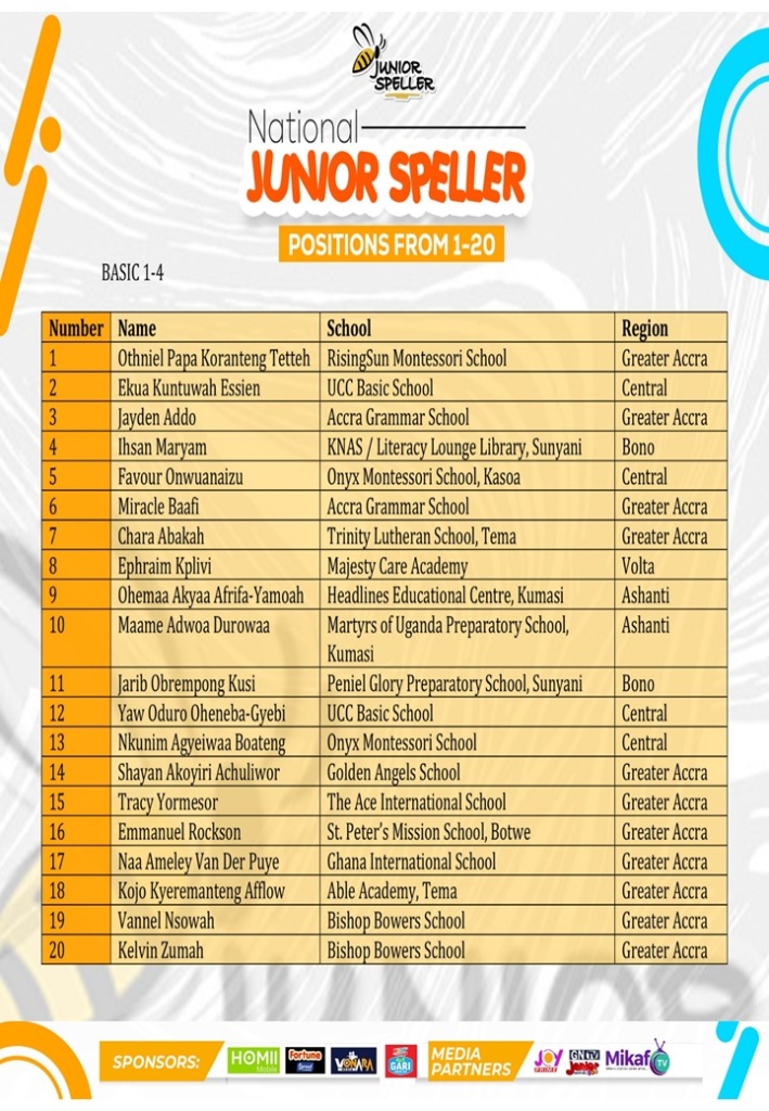 - Othniel Papa Koranteng Tetteh – RisingSun Montessori School (Champion)
