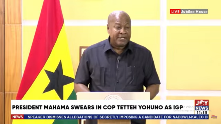 President John Dramani Mahama has urged the new Inspector-General of Police (IGP), COP Christian Tetteh Yohuno to lead the Ghana Police Service with integrity, discipline, and innovation, while ensuring the force remains fair, just, and trustworthy in the eyes of the public.