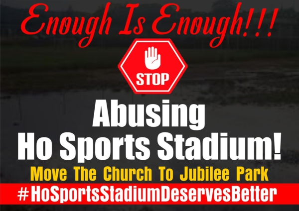 Ho residents have, therefore, engineered a campaign aimed at sending signals to the sports authority to desist from renting out the stadium for events.