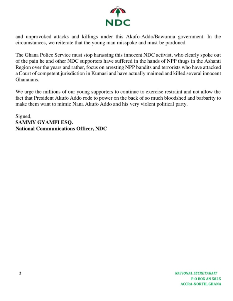 Meanwhile, the Ghana Police Service says it has taken steps to arrest the NDC activist and bring him to justice.