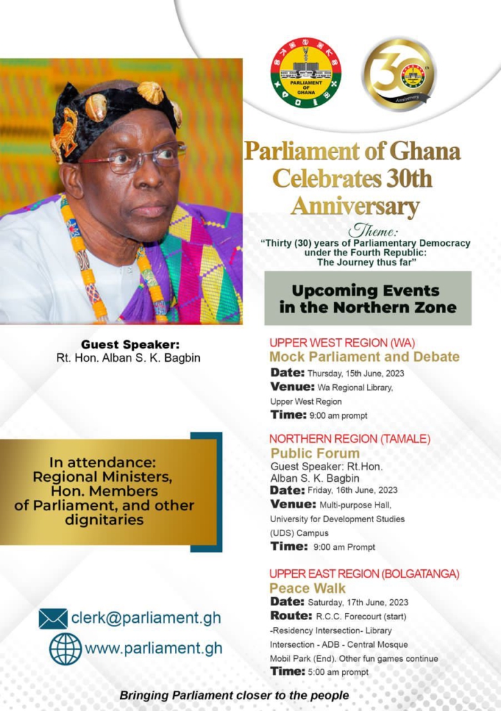 It said to kick start the celebrations, three key programmes would be held in the Northern Zone; a Mock Parliament in Wa in the Upper West Region on Thursday, June 15, 2023, at the Regional Library Complex.
