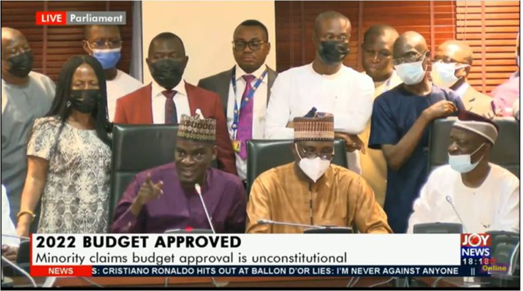 With the Minority absent in Parliament, the Majority MPs voted to approve the budget through popular acclamation.