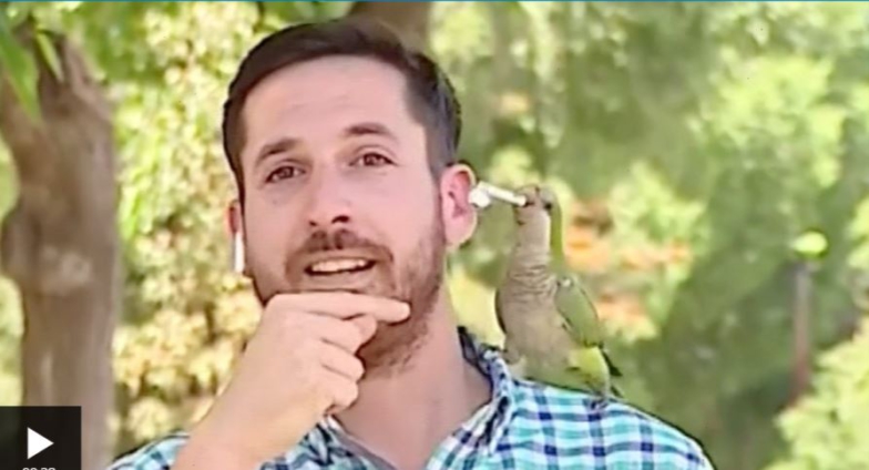 A Chilean reporter was live on air when a parrot landed on his shoulder and stole his earphone.