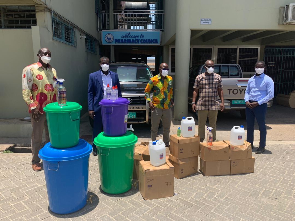 Items received include Veronica Buckets and quantities of alcohol-based hand sanitizers averaging ¢10,000. Receiving the items, Registrar of the Pharmacy Council, Dr. Audu Rauf admitted that the world today is facing new realities and disruption for healthcare professionals worldwide as a result of Covid-19.