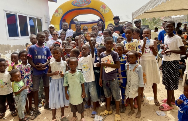 Supported by his friends from the media, arts and corporate Ghana, Philip Nai provided food items, learning materials, clothing, and entertainment to the children of the community.