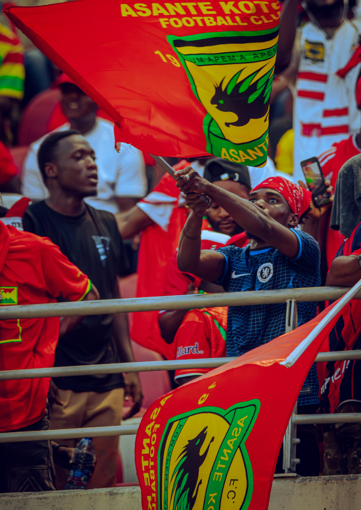Both sides lined up under the bright Accra floodlights, with the atmosphere electric. The fans, draped in their clubs’ colours, filled the stands with chants, flags, and songs that echoed through the capital.