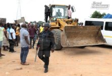 Photos: GRIDCo demolishes illegal structures under high tension lines at Bawaleshie
