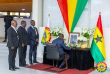 Photos: Sierra Leone’s President visits Ghana, commiserates with Mahama and signs book of condolence for helicopter crash victims