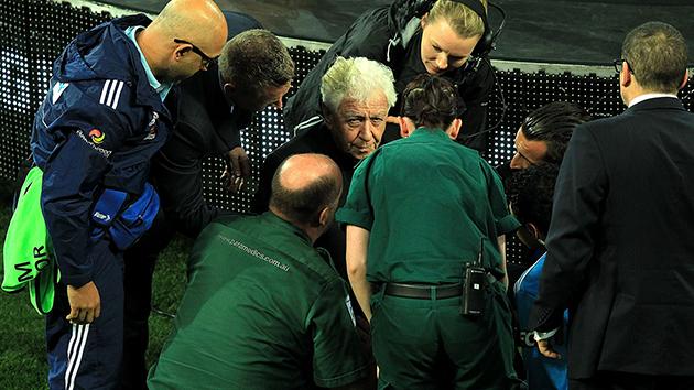 Quite astonishingly, although the fourth richest man in Australia landed on his head, he picked himself up with a wry smile and carried on with the show. His spokesman later said that his shoulder is a bit sore, but that he's otherwise tip-top.