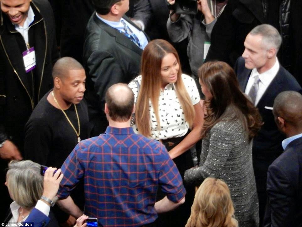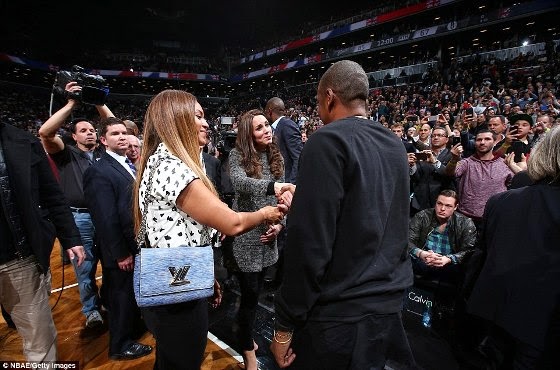 Jay Z and Beyonce met with the Duke and Duchess of Cambridge Prince William and Kate Middleton at a Brooklyn Nets game in New York.