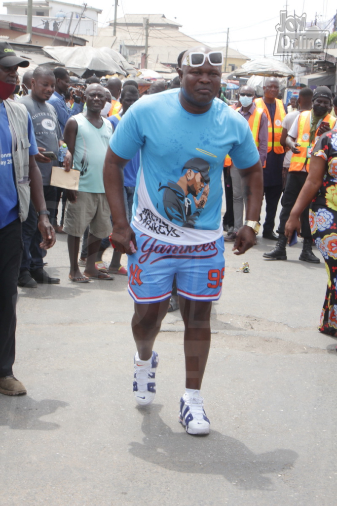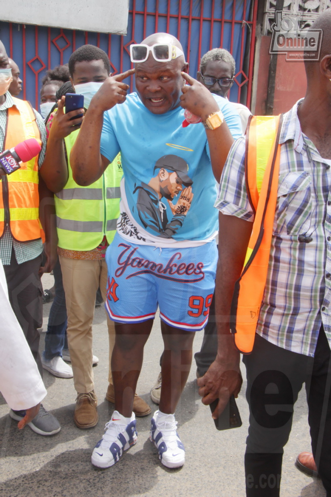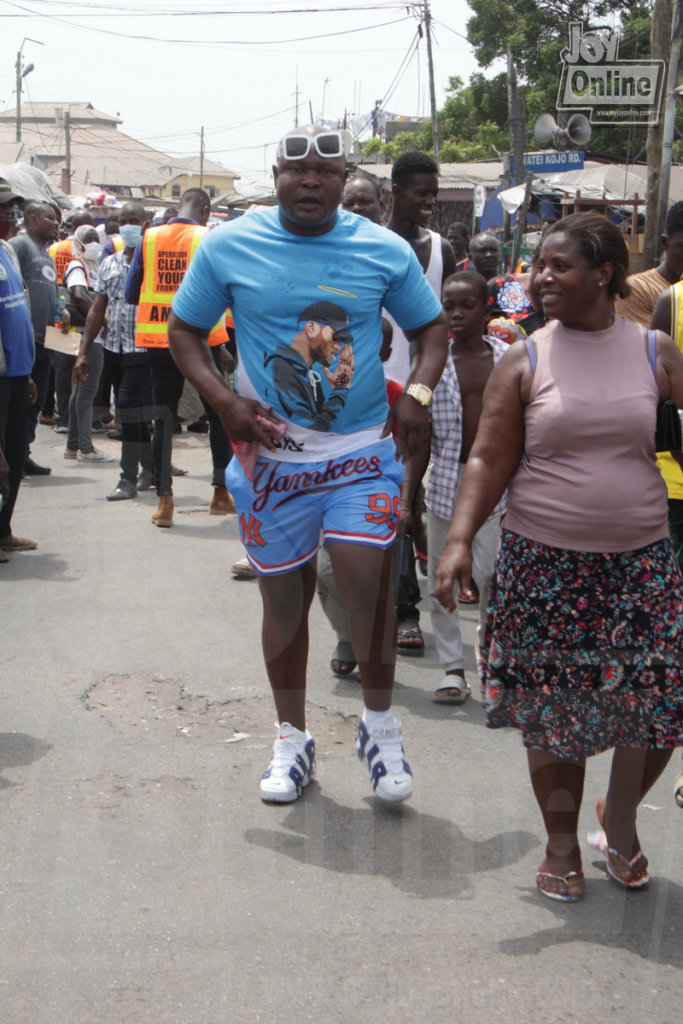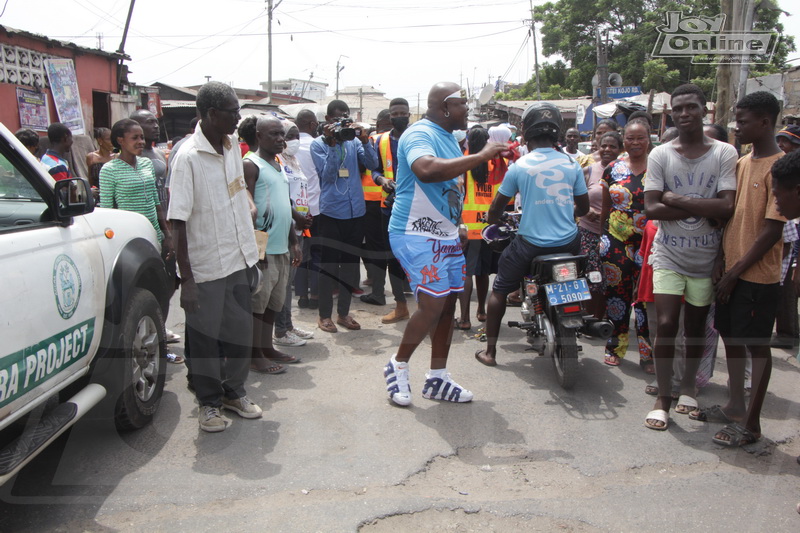 The boxer and his supporters were strolling around the vicinity of Bukom Square in the Ashiedu Keteke Metropolis when he met the Accra Metropolitan Environmental Health Inspectors who were in the community to enforce the newly launched 'Operation Clean Your Frontage' under the Joycleanghana Campaign.
