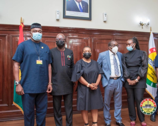 The family of the late legislator all dressed in black were in the House to announce the passing of their beloved to the Speaker of Parliament, Alban Bagbin.