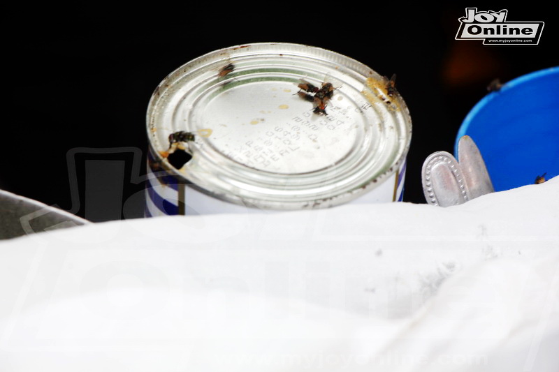 It was found that a popular Kenkey factory with huge patronage has been situated on the edge of a chocked drainage that has been covered with slabs in front of the house which has bred maggots and emitting a foul stench.