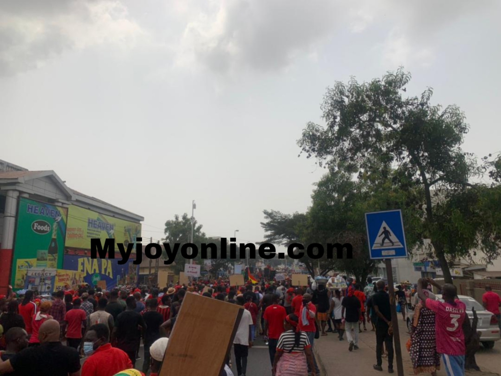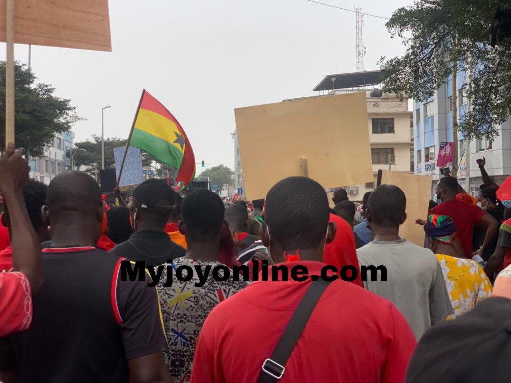 Clad in red and black, they converged at the 'Obra Spot' and marched through the Kwame Nkrumah Avenue, Farisco, Striking Force, the Kinbu Road, the Octagon, the National Theatre through the AU Roundabout.