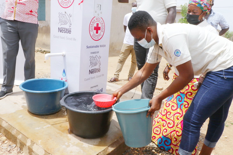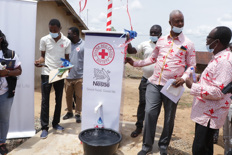 Nestle Ghana, a global food and beverage producers under its partnership with the Ghana Red Cross Society has commissioned a potable water project for the people of Amanhyia in the Suhum Municipality of the Eastern Region.