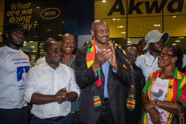 Newly-elected President of Rugby Africa, Mr. Herbert Mensah on Tuesday, March 21, 2023, arrived at the Kotoka International Airport from Cape Town, South Africa where he attended the conference that elected him.
