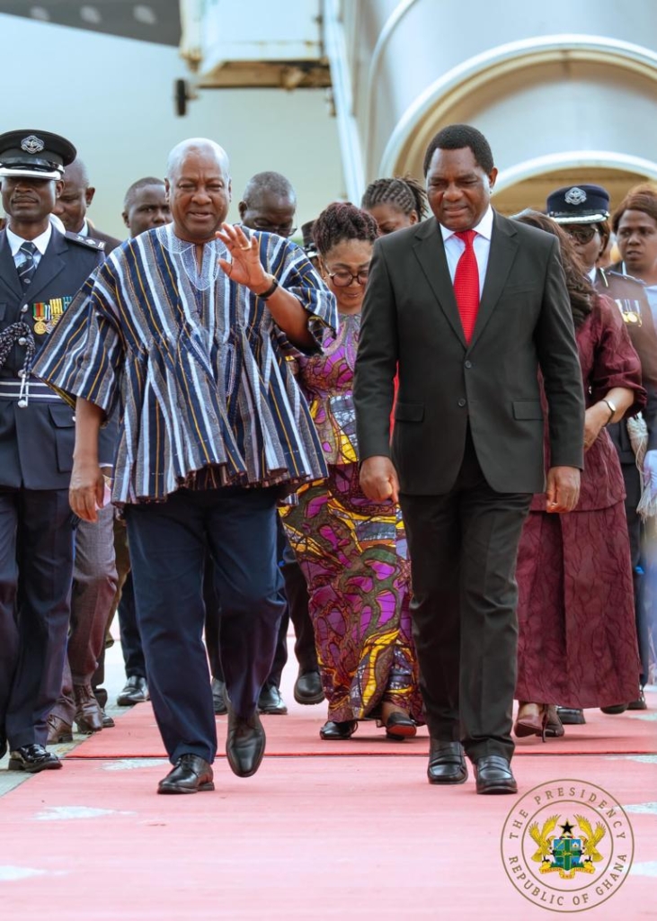 President John Mahama and First Lady Lordina Mahama have arrived in Zambia to begin a three-day state visit at the invitation of Zambian President Hakainde Hichilema.