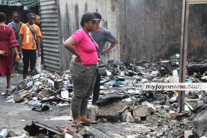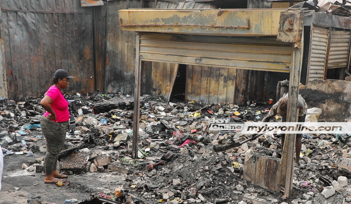 A fire outbreak which occurred at the Kwame Nkrumah Circle destroyed mobile phone shops and other properties running to millions of cedis.