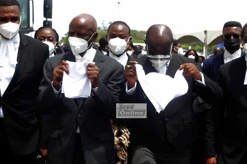 However, soon after the Supreme Court dismissed the case yesterday lawyers representing present Akuffo-Addo started singing victory songs and waving white handkerchieves.