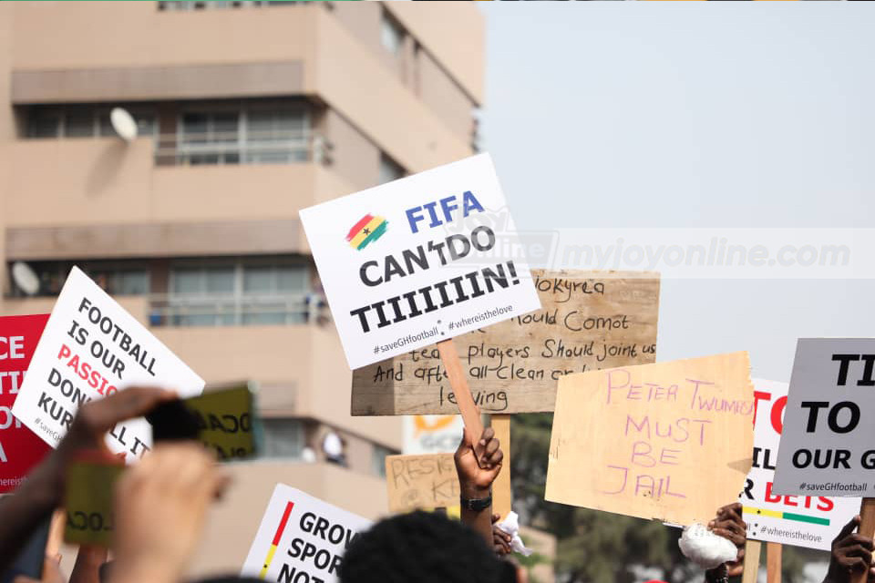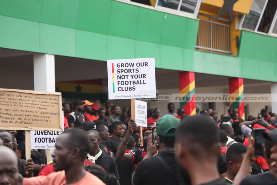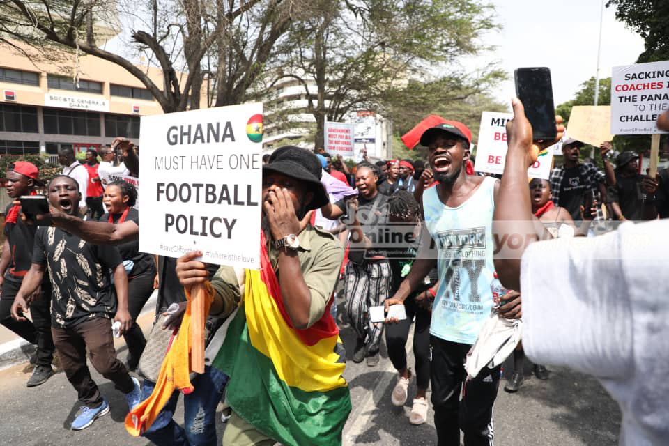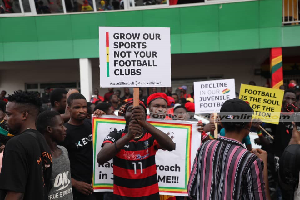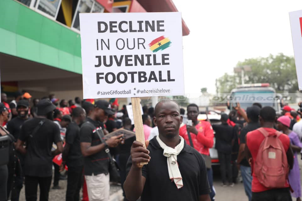 The protesters are demanding drastic measures to be taken to salvage Ghana’s dying football industry.